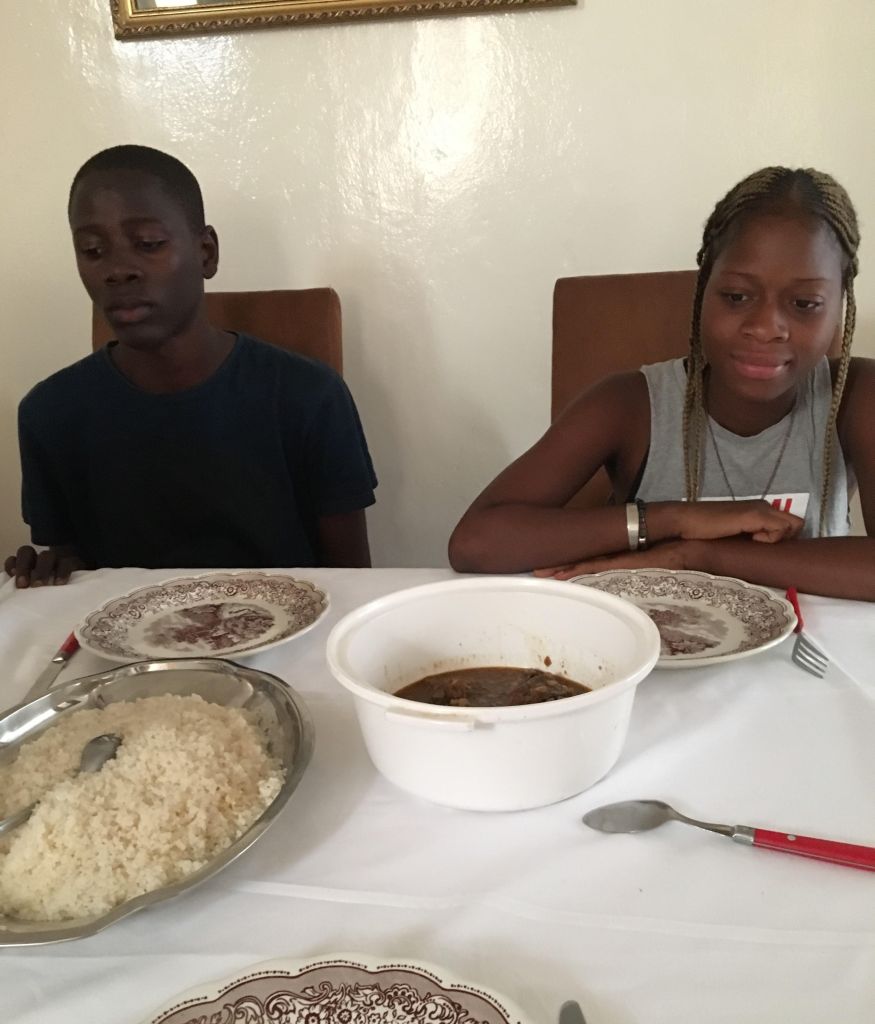 Once everything was settled each one of the St. Mike’s students were invited to go to the house of one of the members of the English Club for lunch. As we have learned on the trip meals are a very social thing for a lot of the people in Senegal and so it was quite the honor for us to be invited into their homes and to share a meal with them and their families. Many of us were introduced to a large number of their family members including a vast majority of their extended family. Myself, I was paired up with a guy named Michel and a girl named Khadija. We went to Michel’s house where I was able to meet his parents and older sister. Unlike a lot of people we didn’t end up sharing a meal with the family, but instead the three of us ate together.