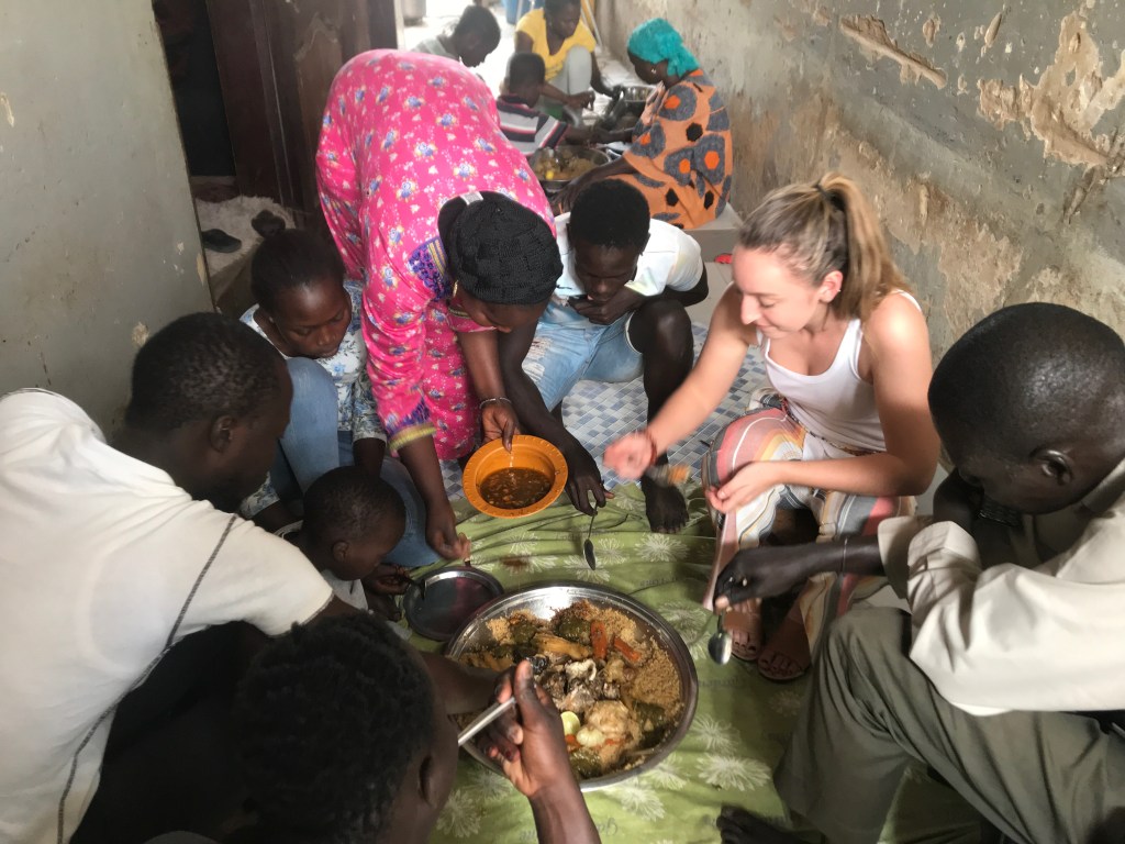 My other favorite photo was taken by Cheikh, a member of the english club, while I was eating lunch with his family. We ate ceebujen, or fish and rice! I was so welcomed into their home by all of his family members, making this experience one of the best! I felt right at home and got to know all of his family! Cheikh gave me my Senegalese name, Coumba, which is his mothers and niece’s name. We bonded over the name while we enjoyed a delicious lunch. I will remember the moment this photo captured as the time when I truly experience Senegalese community and family.