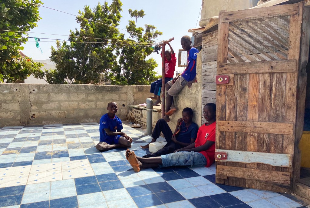 On the roof of Ibrahim’s house, he had a little studio that was used for his glass painting business. Our class spent a lot of time up there working on our glass paintings and it was one of my favorite spots. It was very relaxing and you could see our whole section of Guinaw Rail and Waranka. Next to the studio was a chicken coop that a lot of young boys liked to hang out at and play with the chickens. I loved the image of all of them hanging out on the roof, playing with birds, and messing around. When I saw them at this point, they were so perfectly posed, just hanging out. I knew I needed a photo, so I asked them if it was alright. With their consent, I snapped a few photos and I’m really proud of how they turned out. To others, the photo may not seem like anything special, but it was a scene I had wanted to capture for a while. To me, it felt like a glimpse into the life of a young Senegalese boy and it made me happy.